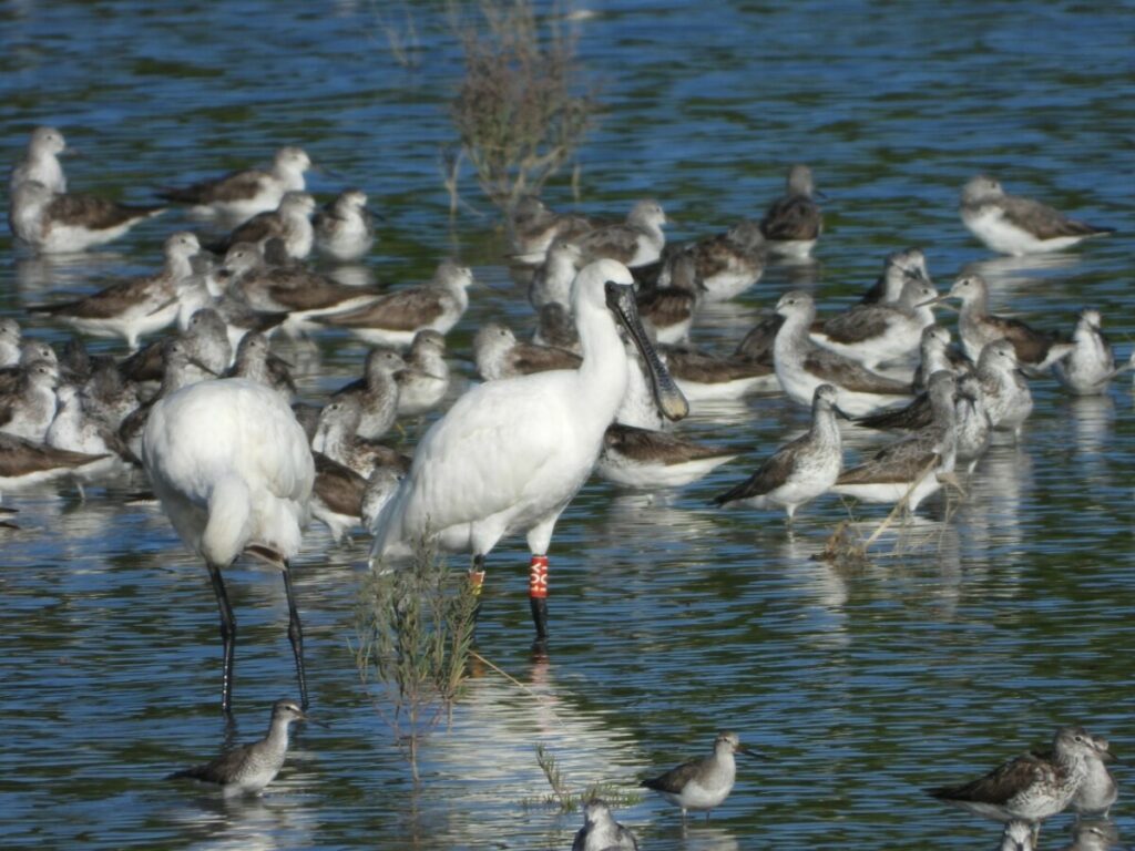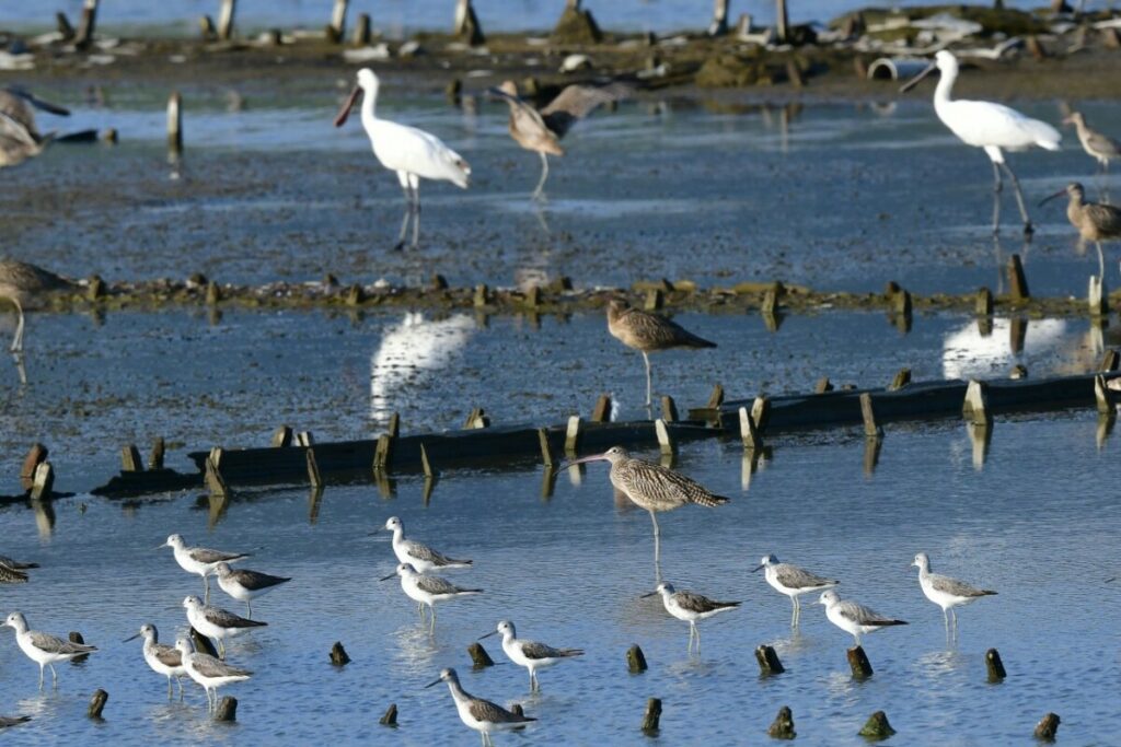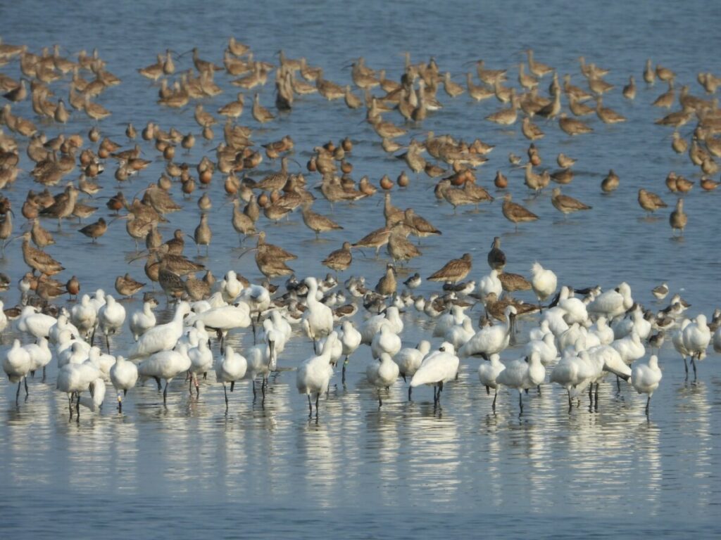 Figure 4. Shorebirds and Black-faced Spoonbills resting at Songsan Reservoir © Green Korea Incheon