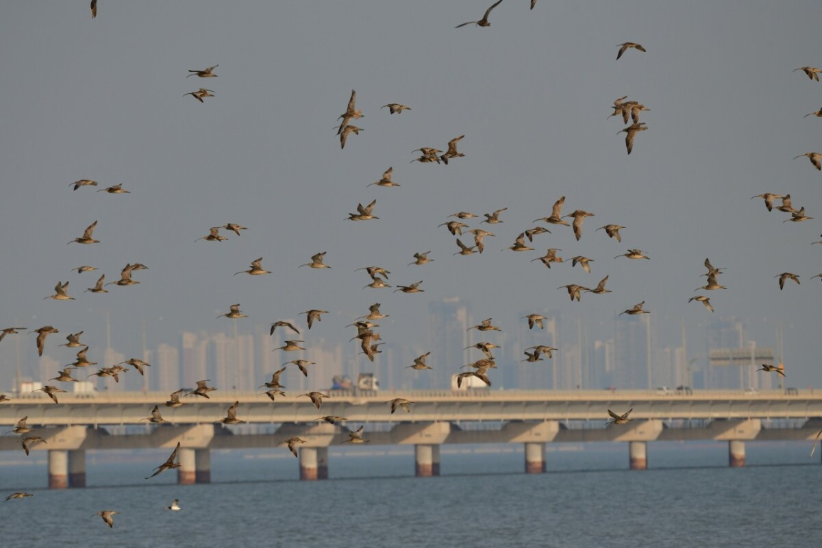Figure 2. Far Eastern Curlew flying from the southern end of Incheon Bridge © Green Korea Incheon