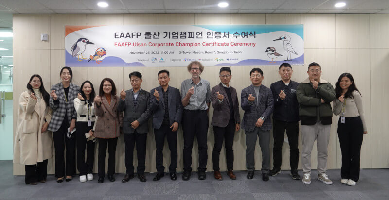 On 25th November, 2022, the Ulsan Corporate Champion Certificate-presentation Ceremony was held in G-Tower, Incheon, Ro Korea, to celebrate the first year of the Ulsan Corporate Champion program. Ulsan Metropolitan City and four Ulsan corporates (Hyundai Motor Company, S-OIL Corporation, Korea Petrochemical Ind. Co., LTD., Kyungdong City Gas co., Ltd.), which signed an MOU with the EAAFP Secretariat in May 2021, participated in the event.
