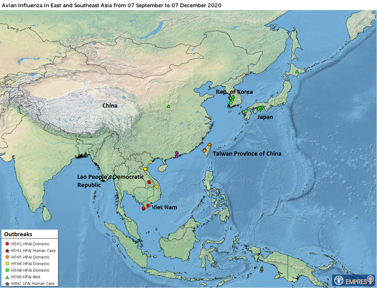 Avian Influenza in East and Southeast Asia from 7 September to 7 December 2020 ©EMPRES-i