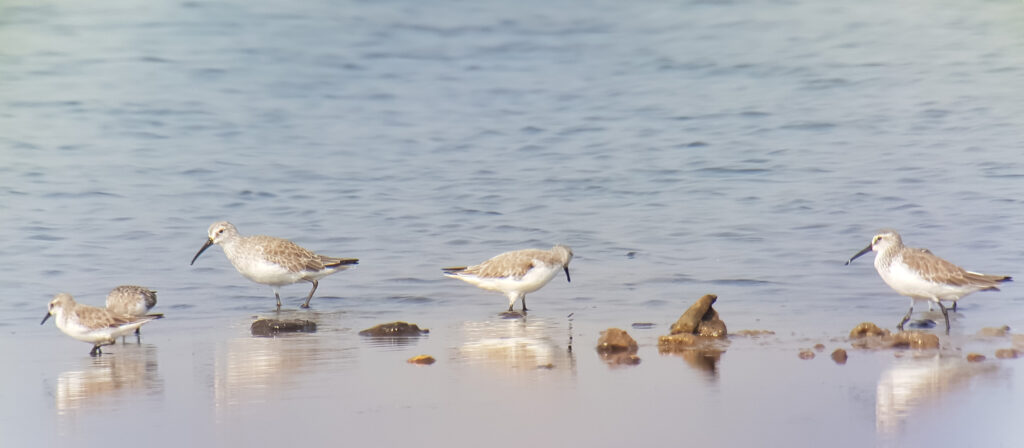 Red-necked Stints (Calidris ruficollis), Curlew Sandpipers (Calidris ferruginea) ⓒ Elize Ng