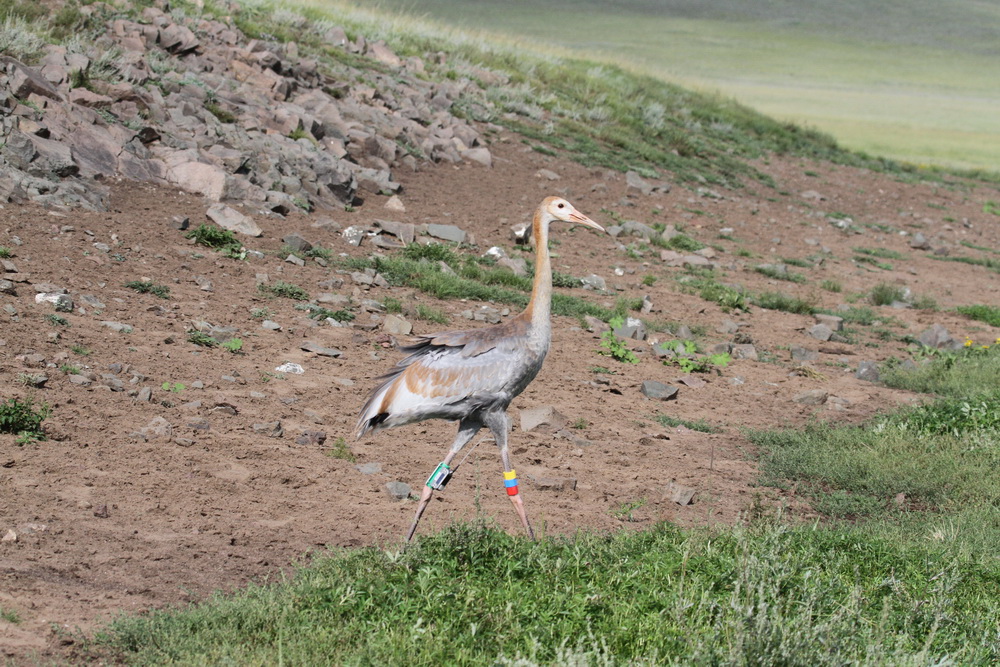 Crane with PTT © Wildlife Science and Conservation Center of Mongolia