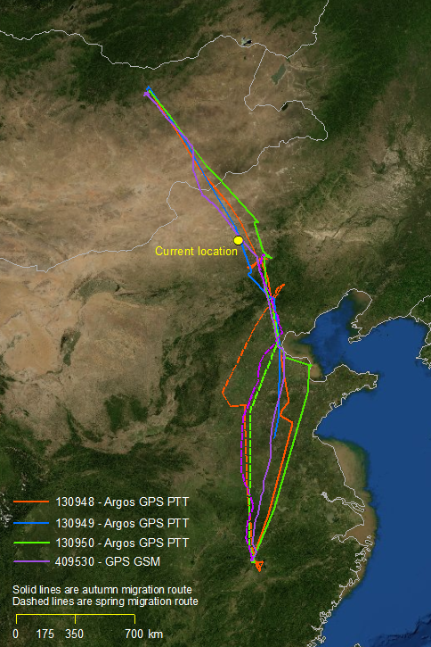White-naped crane migration data as of 25 March 2014 © Wildlife Science and Conservation Center of Mongolia