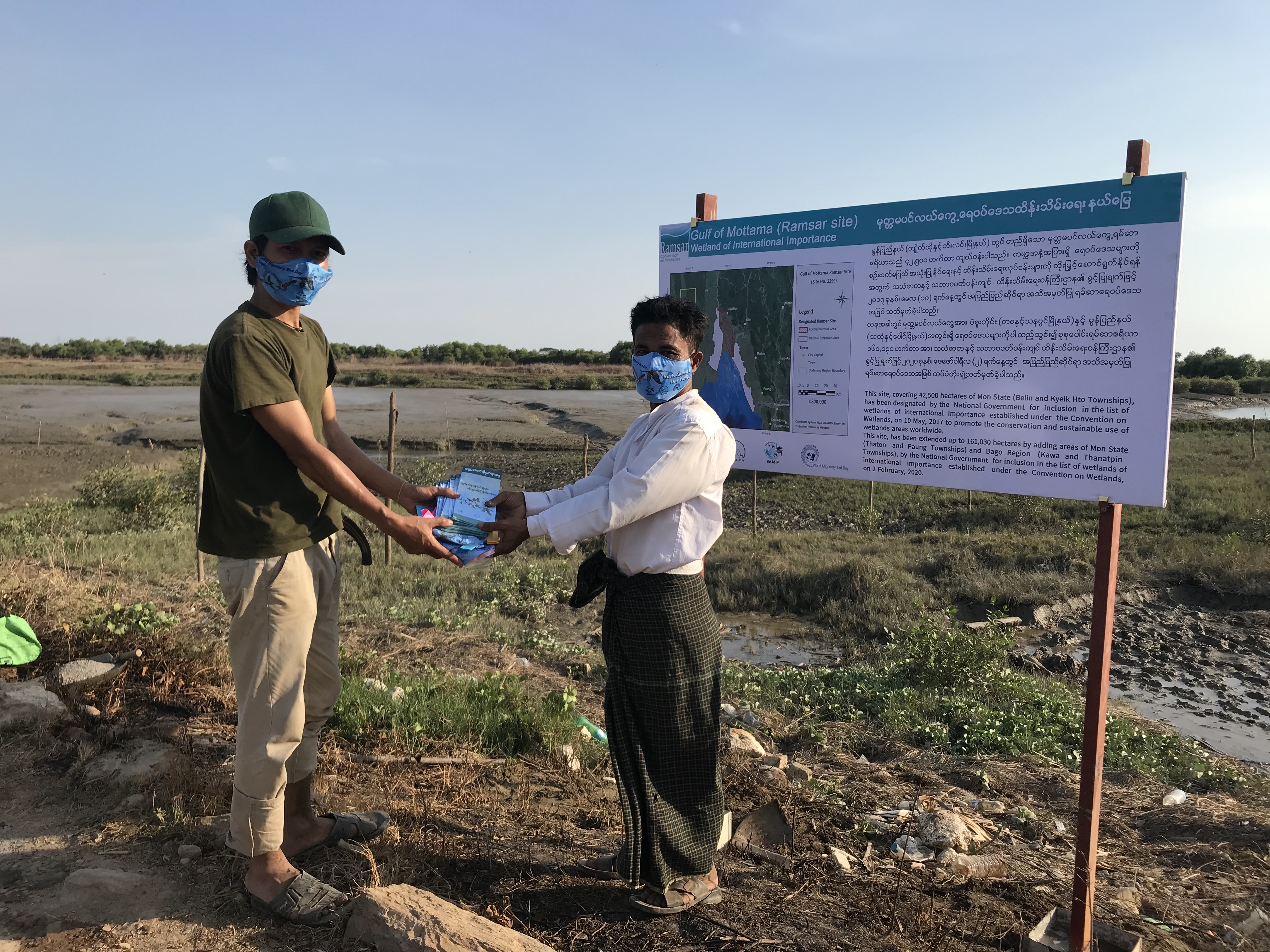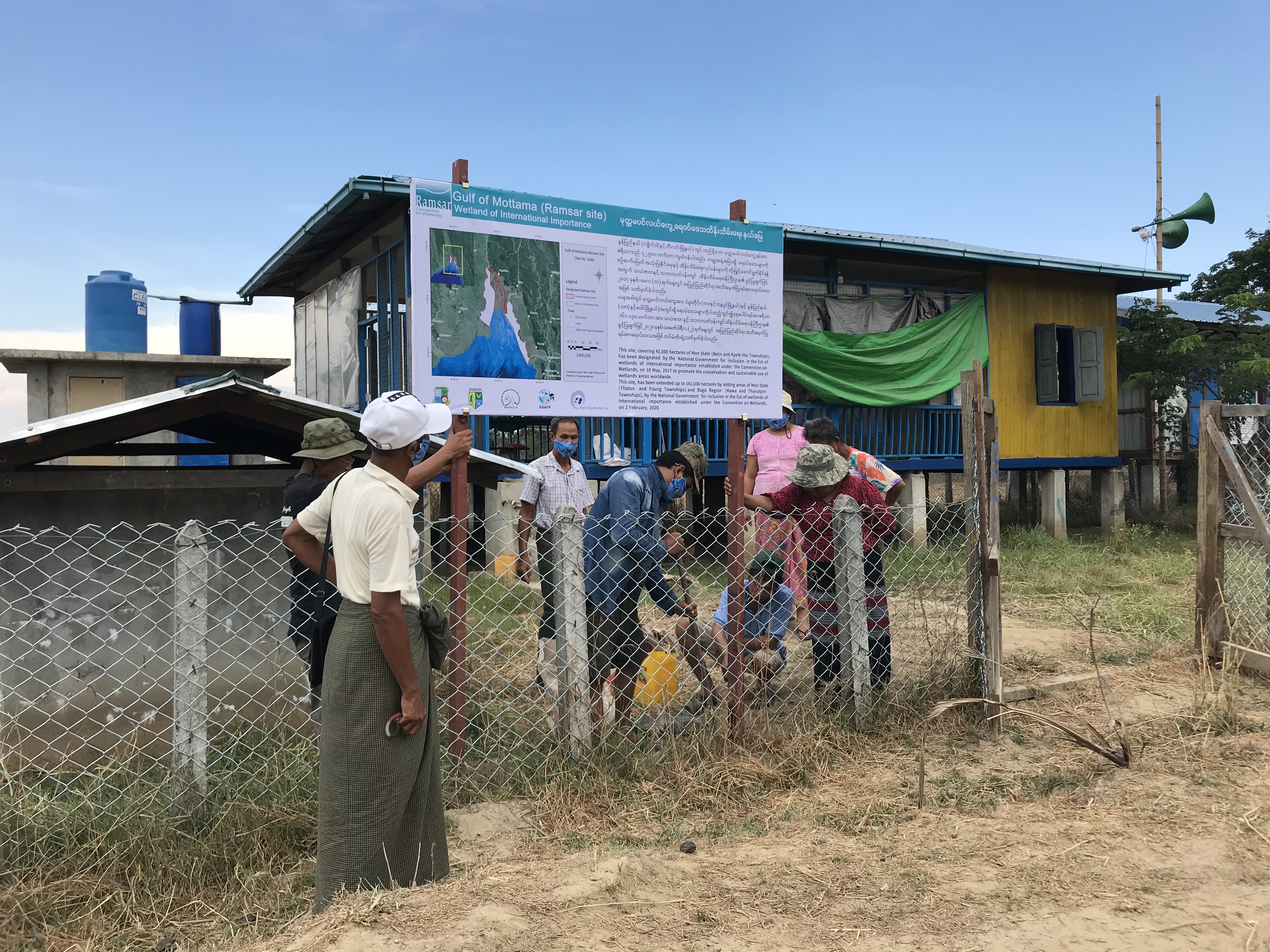 Secondary, a total of (6) Gulf of Mottama Ramsar awareness signboards were installed per guideline of Ramsar Convention to know the importance of wetlands conservation for migratory shore birds species and their values in six coastal villages along the Gulf: Kyeik Hto, Bilin, Thaton and Paung Townships in Mon State and Kawa and Thanatpin Townships in Mon State.