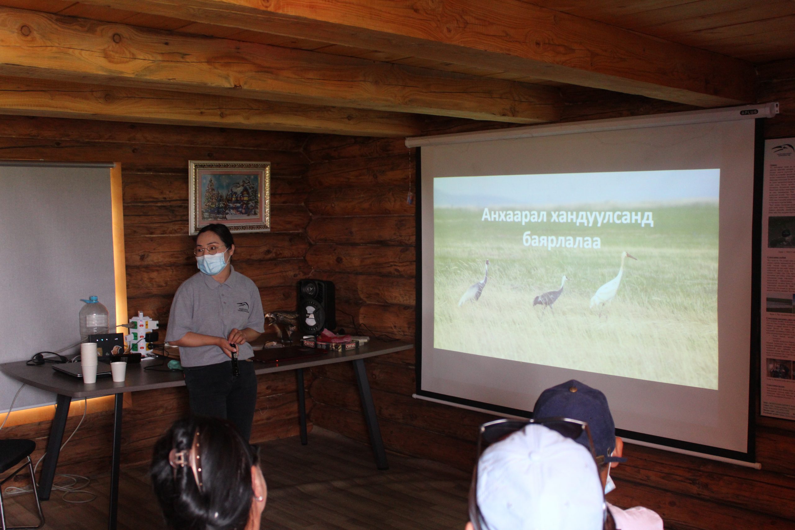 The event was organized in Chukh Bird Research Station. Mr. Amarkhuu Gungaa who is a Research director of Mongolian Bird Conservation Center opened the event and after that Ms. Uchrakhzaya Tserenbat, a coordinator of CBRS introduced their two years result of migratory shorebirds monitoring at Chukh lake. After that Ms. Baasansuren Erdenechimeg presented about migration studies of shorebirds, cranes and some species of raptors that tracked from Eastern Mongolia last three years.