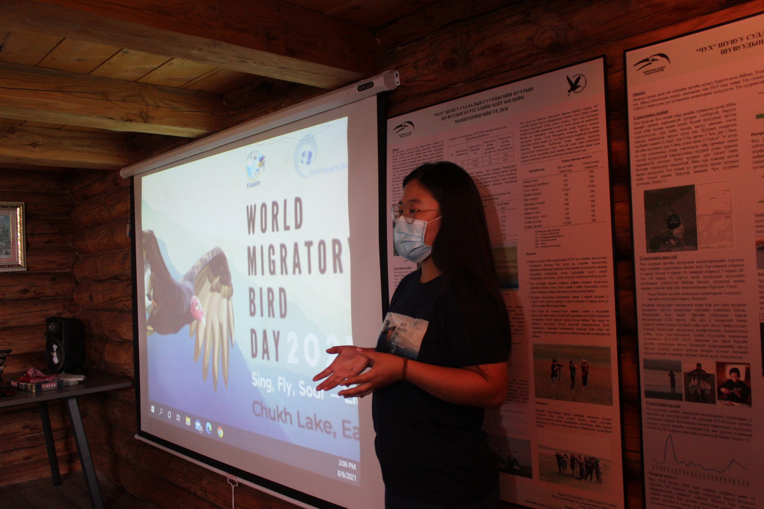 After tea break, the event continued that our oldest but youngest volunteer Ms. Khaliun Sukhbaatar who is a 12th grade student from a local school to gave us an impressive talk about her three years of experience at bird research station.