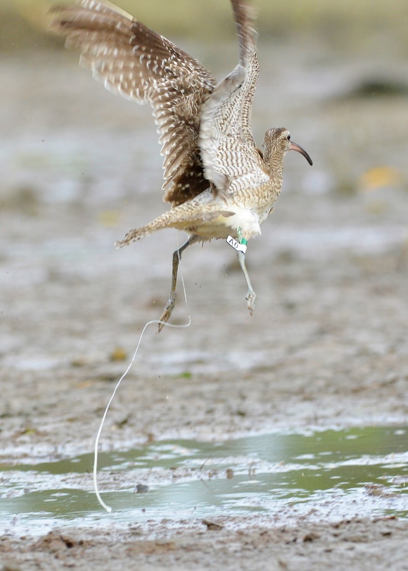 Flying Whimbrel tagged as A0, Sungei Buloh Wetland Reserve, Sep 2017. © Sungei Buloh Wetland Reserve