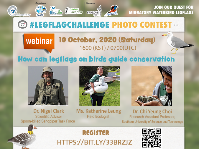 EAAFP, BirdLife International and Oriental Bird Club are organizing a #LegflagChallenge Photo Contest to encourage observation of waterbirds with legflags, bands and tags. The #LegflagChallenge Photo Contest aims to encourage birdwatchers, bird photographers and all kinds of citizen scientists to document and report sightings of waterbirds in the East Asian-Australasian Flyway that carry leg flags, tags and other types of attachments. The information drawn from these observations, in turn, are particularly valuable in helping conservationists develop plans and actions to conserve migratory birds. Your sightings contribute to conservation!