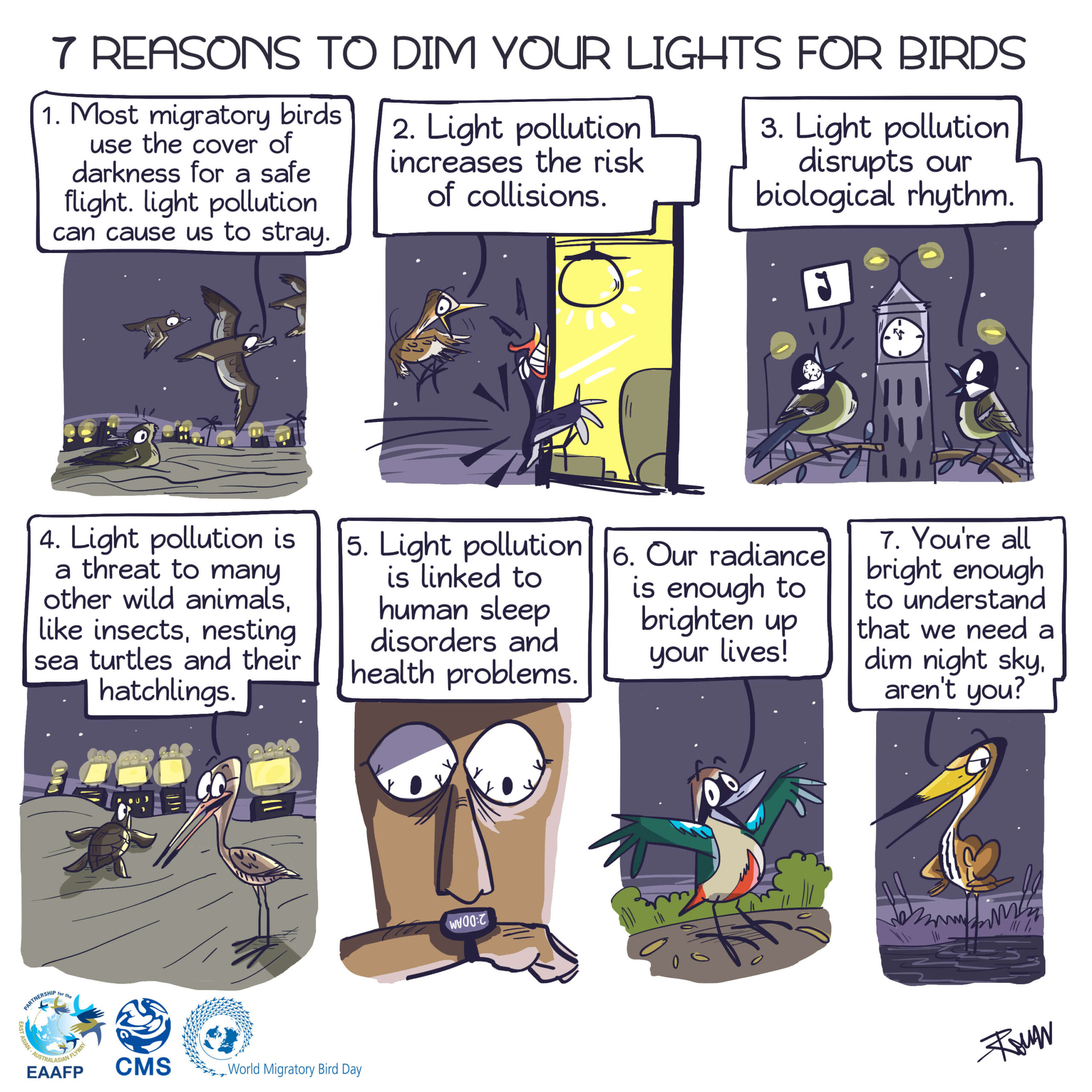 | English | Dim the Lights for Birds at Night! | World Migratory Bird Day | |