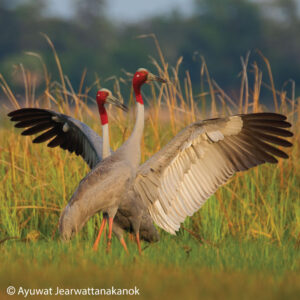 ![]() | Sarus CraneScientific name: Grus antigone Conservation status: IUCN - Vulnerable, CMS - Appendix II Sarus Crane is a short-distance migrant with a bright red head and upper neck. They are inhabitants in wetlands and agriculture fields. There are populations rangingfrom India and Pakistan, Lower Mekong Basin including Myanmar, Vietnam, Cambodia Thailand, and a Australian population. They are vulnerable due to water diversions and unsustainable conversion of wetlands, habitat loss and other human disturbances. https://savingcranes.org/learn/species-field-guide/sarus-crane/ | ![]() |