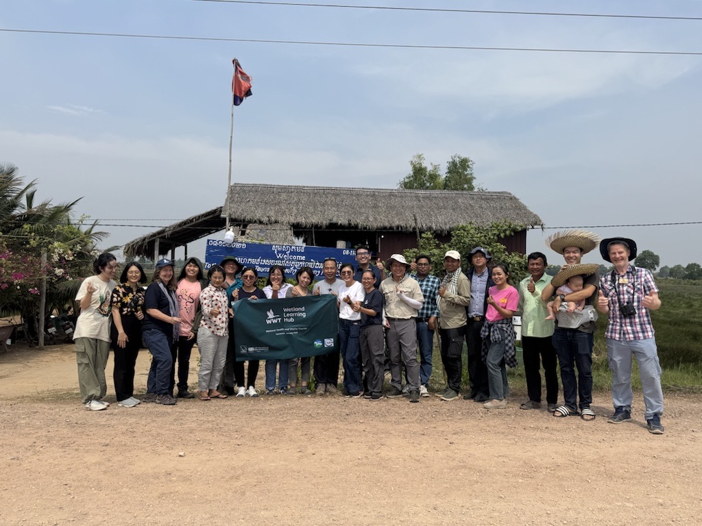 Participants and course facilitators, including Bena Smith (International Wetland Management Advisor at WWT), Tina Redshaw (International Engagement Manager at WWT), and WWT’s Cambodia team, at Anlung Pring Protected Landscape CBET Centre.