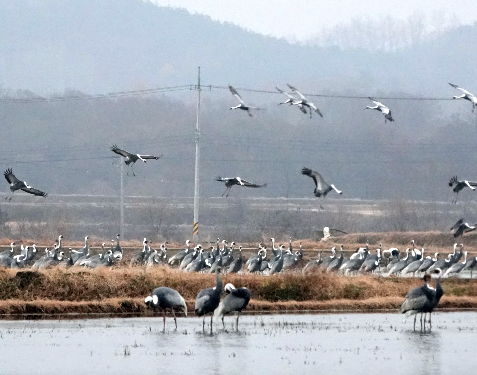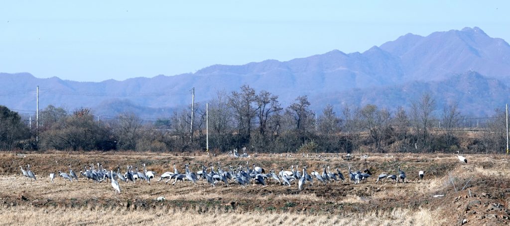 Every year after harvest of rice in Cheorwon, a place in Ro Korea close to the border of DPR Korea, farmers laid down their farming equipment and picked up other tools – binoculars and cameras – and contribute to the conservation of cranes. As Cheorwon is a fertile place with clean water flowing from the Hantang River, and with less human disturbance due to the location within the Civilian Control Zone (CCZ), this site attracts thousands of cranes every winter. There are not many places in Asia where you can find seven species of cranes (Siberian Cranes, Red-crowned Crane, White-naped Crane, Hooded Crane, Common Crane, Demoiselle Crane and Sandhill Crane) at one site, making Cheorwon a paradise for cranes. The site was designated as one of the earliest crane network sites in East Asian-Australasian Flyway and became the first EAAFP Flyway Network Site (EAAF 027) in Ro Korea.
