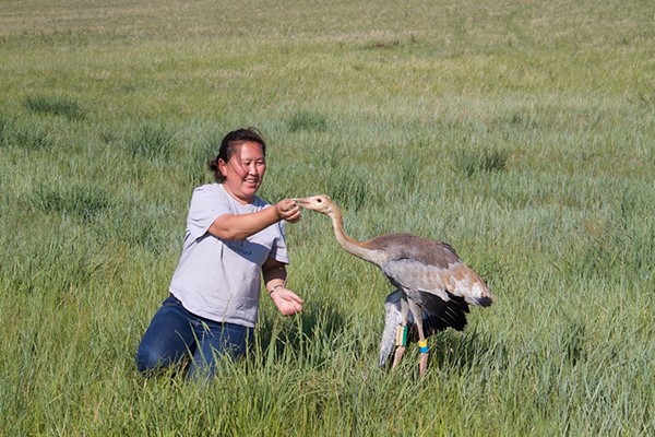Several White-naped Cranes – including one bird banded by Nyamba and his team – were accidentally poisoned in eastern China during migration. Thanks to quick action by local villagers and the State Forestry Bureau, all six birds recovered and were returned to the wild.