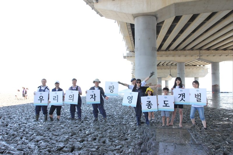 Participants holding the placard “Our Pride, Yeongjongdo Tidal Flat” ©Jung-bu Ilbo