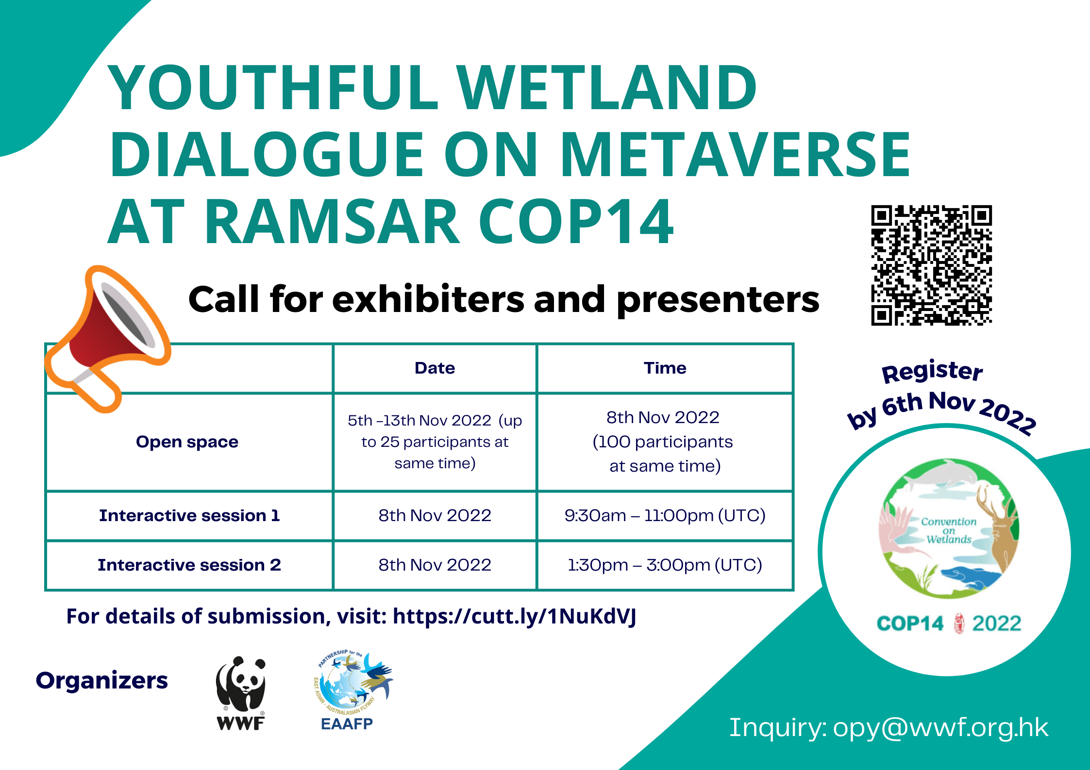 | Register a slot to present your conservation work during Ramsar COP14! Registration form: https://forms.gle/kTrMP6E9d7oXunkc6 | ![]() |